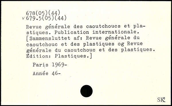 Revue générale des caoutchoucs et plastiques. Publication internationale. [Saramensluttet af: Revue générale du caoutchouc et des plastiques og Revue générale du caoutchouc et des plastiques. Édition: Plastiques.]
