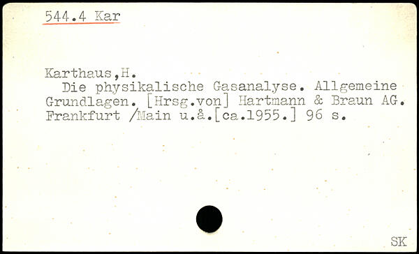 Die physikalische Gasanalyse. Allgemeine Grundlagen. [Hrsg.von] Hartmann & Braun AG. Frankfurt /Main u.&.[ca.1955.]