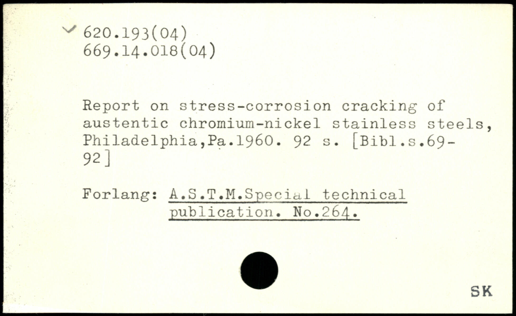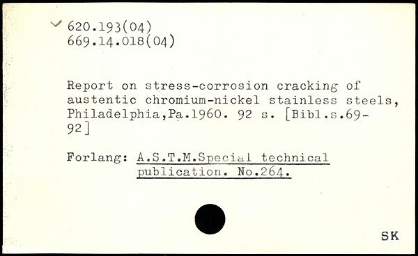 Report on stress-corrosion cracking of austentic chromium-nickel stainless steels, Philadelphia,Pa.1960.