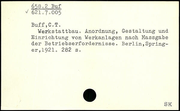 Werkstattbau., Anordnung, Gestaltung und Einrichtung von Werkanlagen nach Massgabe der Betriebserfordernisse.