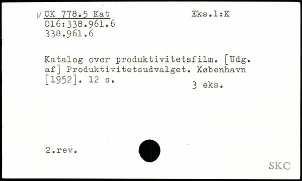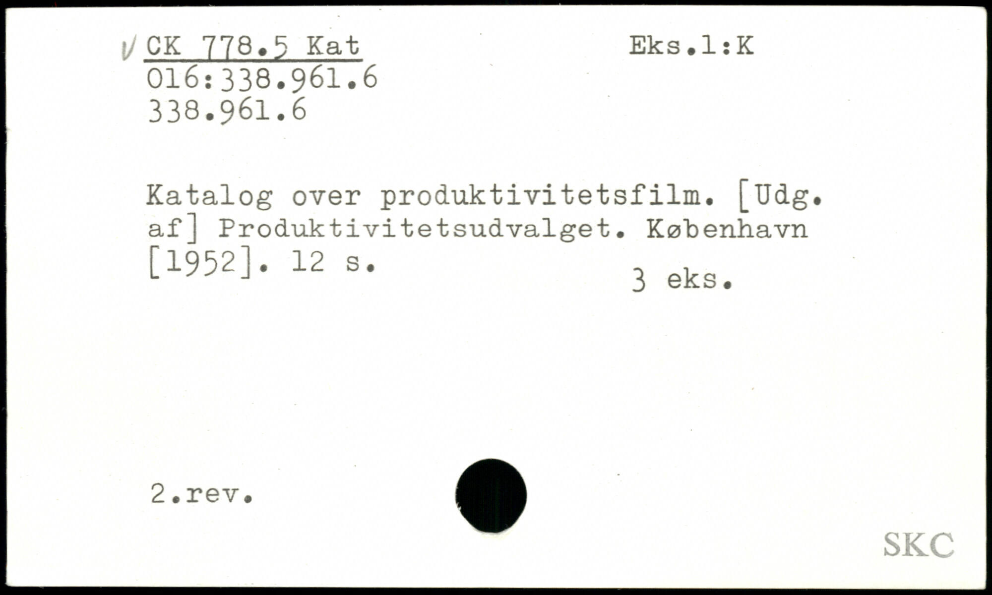Katalog over produktivitetsfilm. [Udg. af] Produktivitetsudvalget. København ^952]-