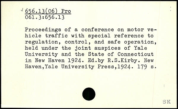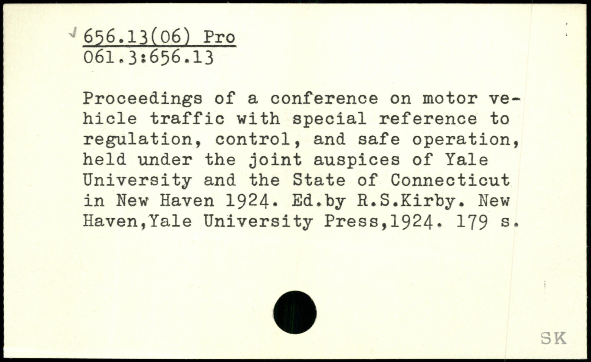 Proceedings of a conference on motor vehicle traffic with special reference to regulation, control, and safe operation, held under the joint auspices of Yale University and the State of Connecticut in New Haven 1924, Ed.by R.S.Kirby.
