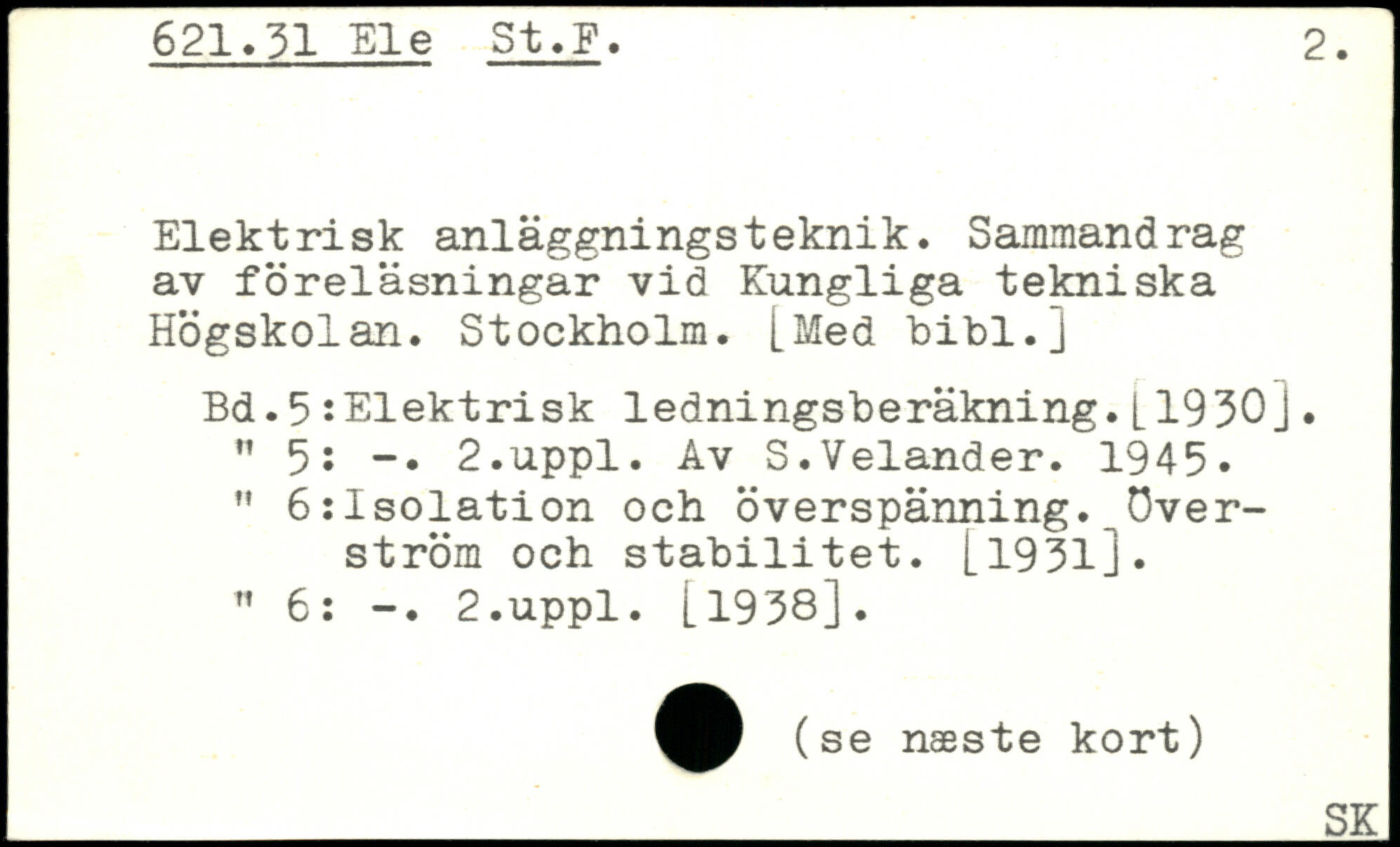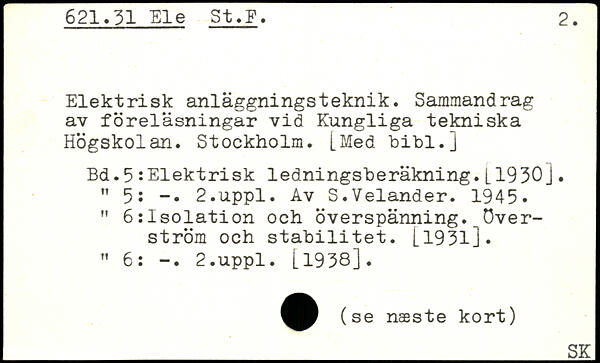 Elektrisk anläggningsteknik. Sammandrag av föreläsningar vid Kungliga tekniska Högskolan. Stockholm. [Med bibl.j