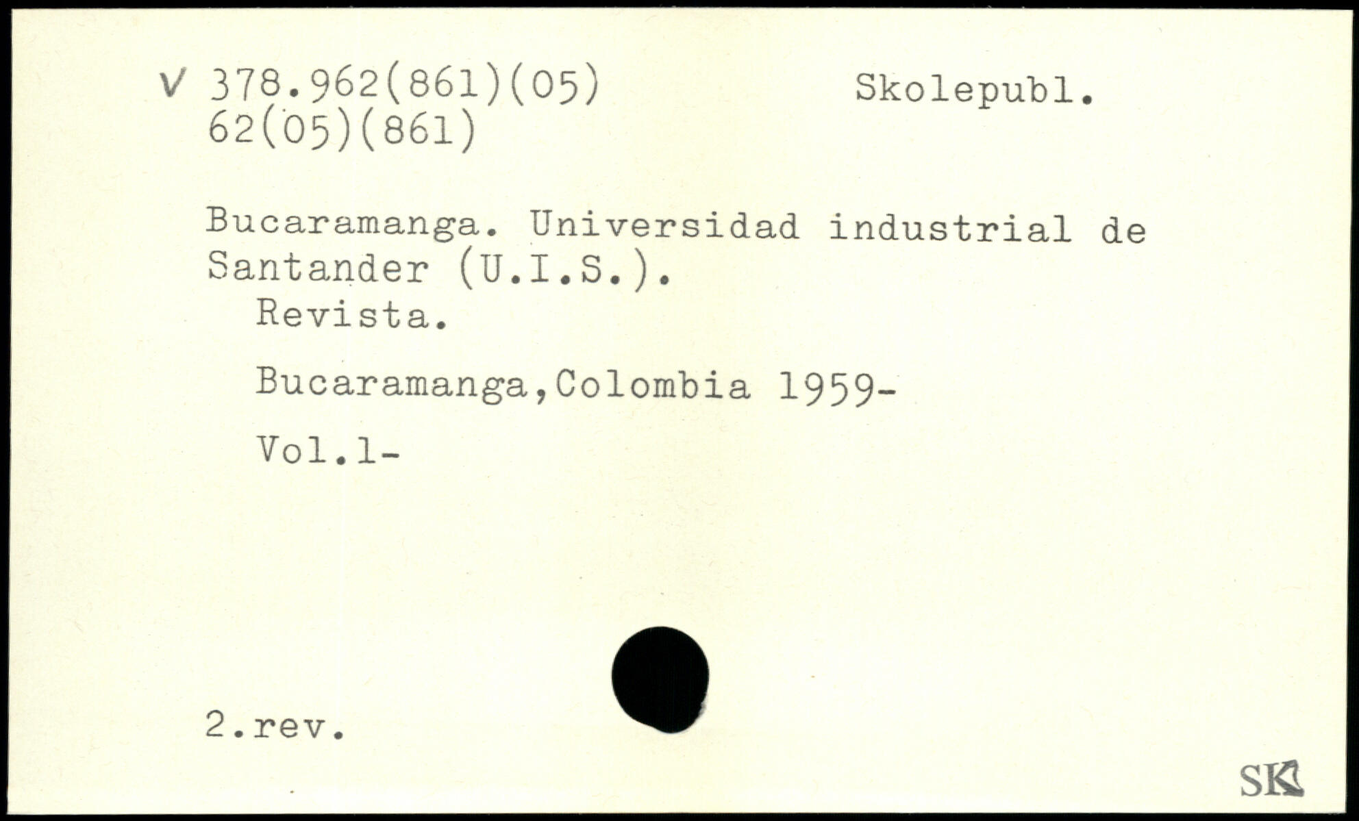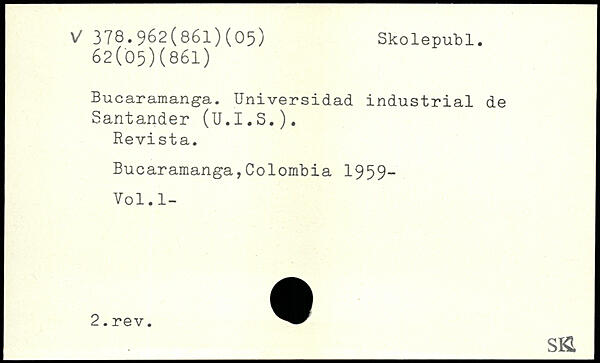 Bucaramanga. Universidad industrial de Santander (U.I.S.). Revista. Bucaramanga,Colombia 1959-Vol.l- __s&
