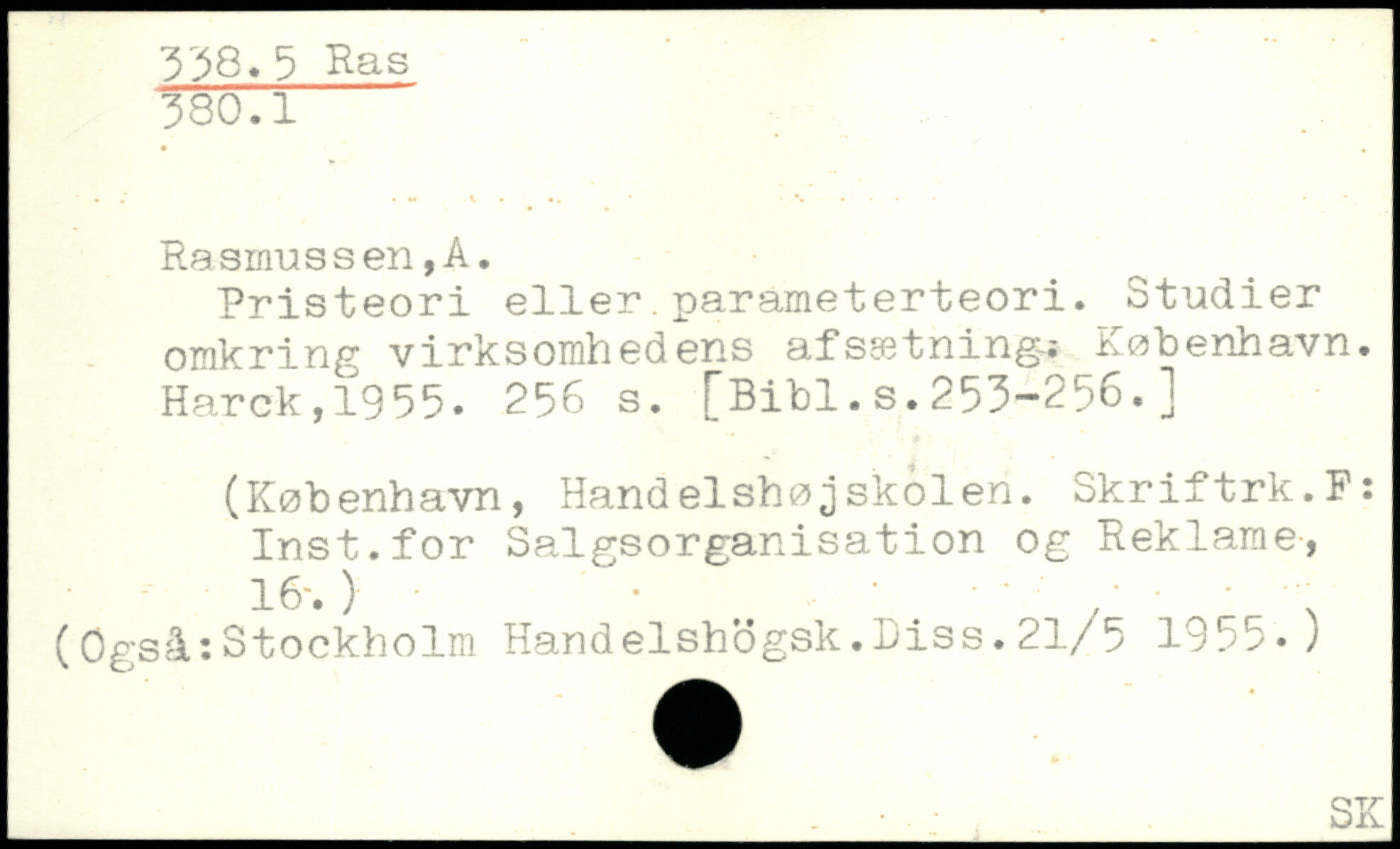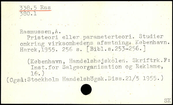 Pristeori eller.parameterteori. Studier omkring virksomhedens afssetning-,; København. Harck,1935.