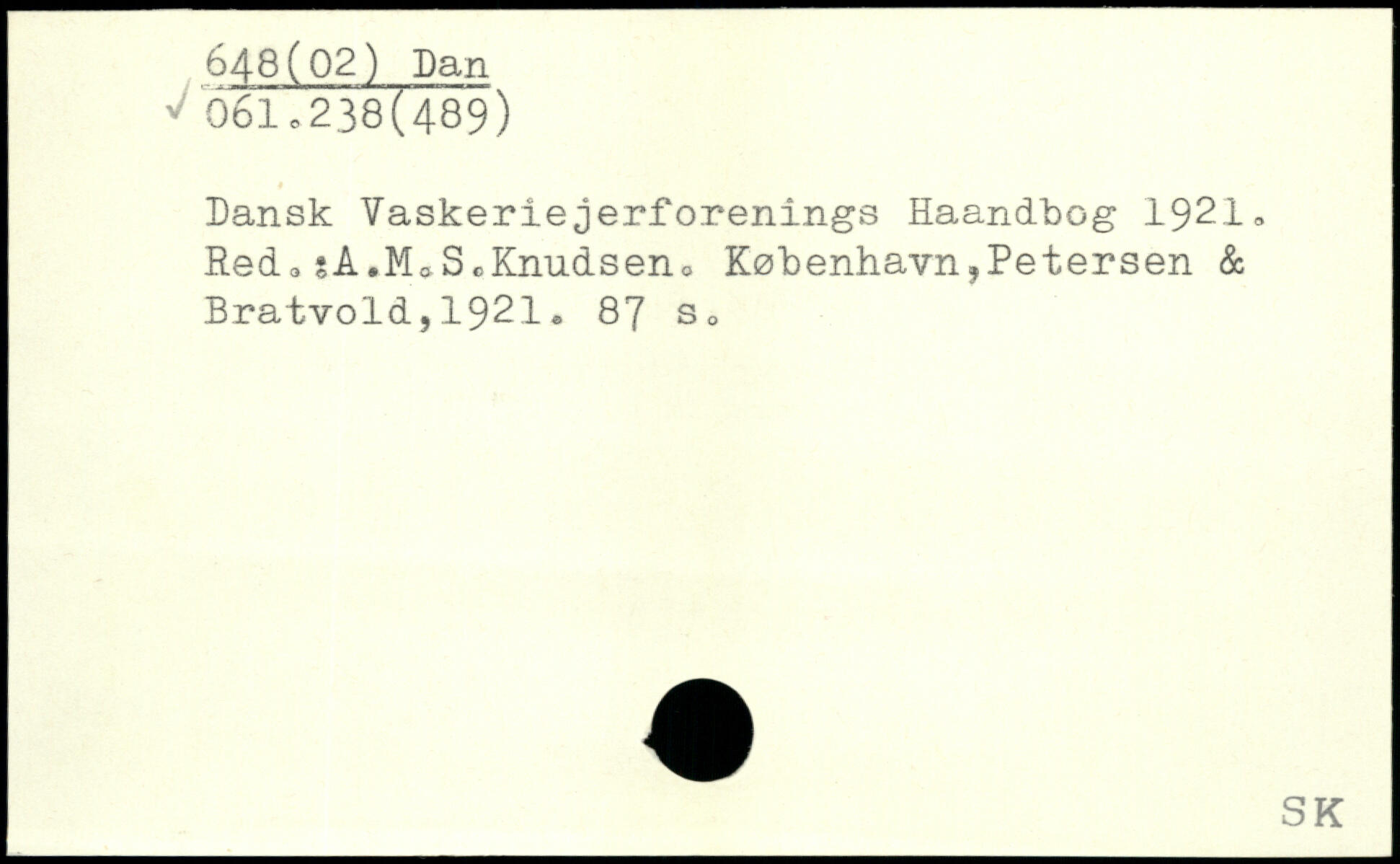 Dansk Vaskeriejerforenings Haandbog 1921 , Red0?A.M0ScKnudsen.