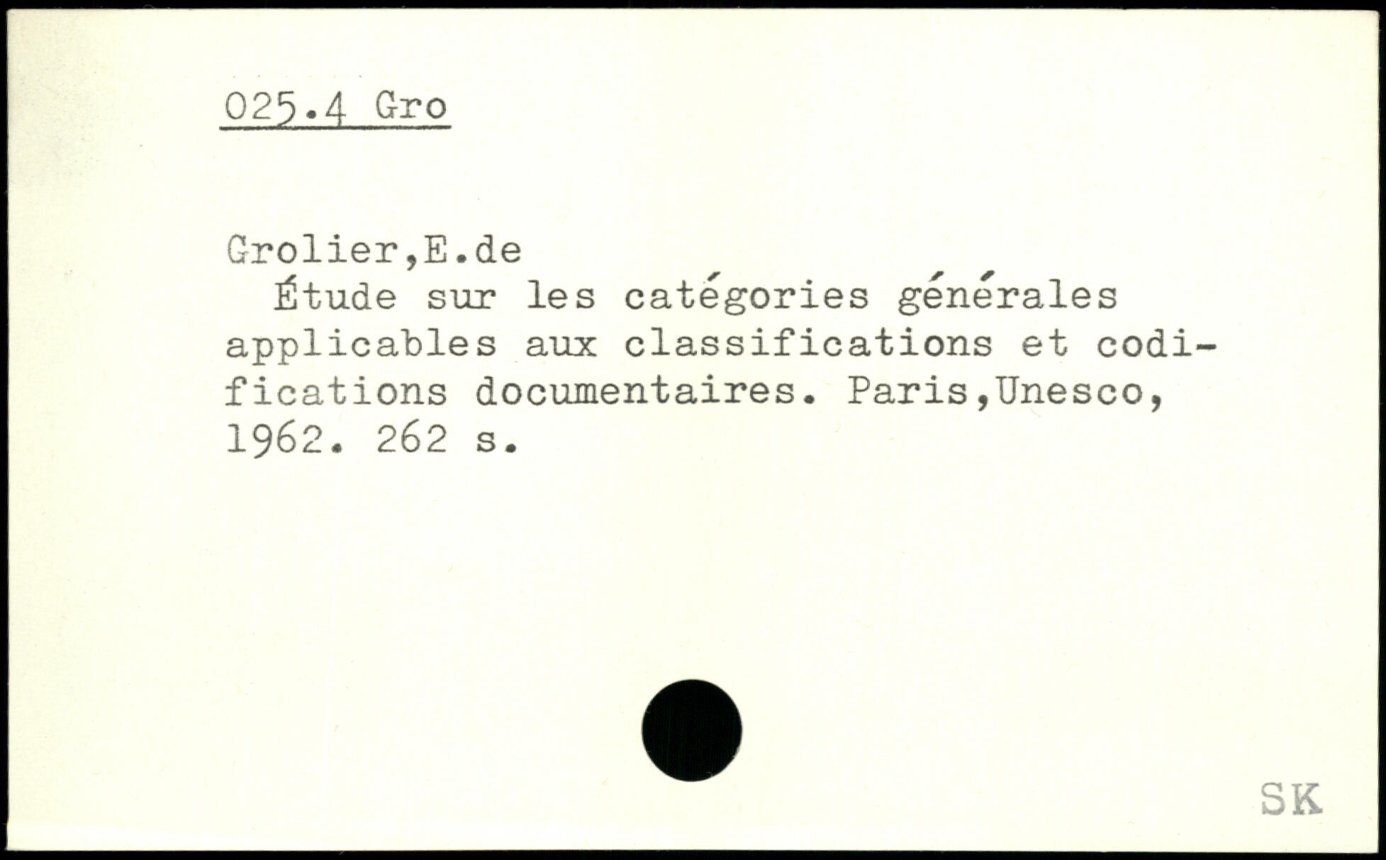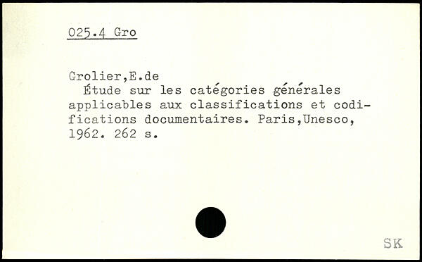 Étude sur les catégories générales applicables aux classifications et codifications documentaires.