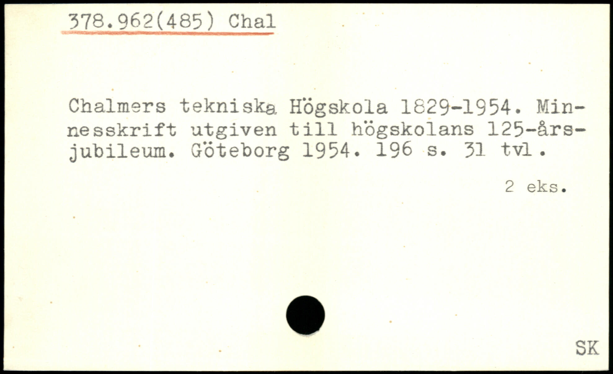 Chalmers tekniska Högskola 1629-1954. Minnesskrift utgiven till högskolans 125-års-jubileum. Göteborg 1954.