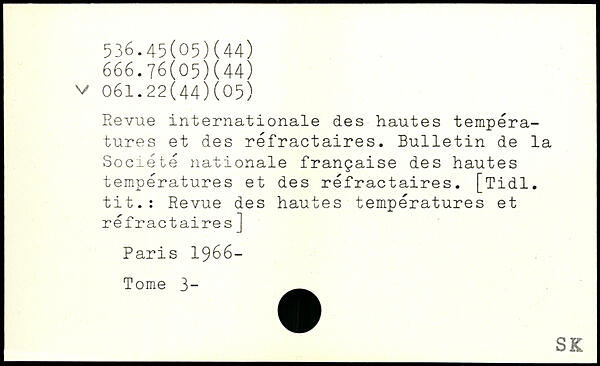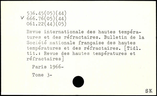 Revue internationale des hautes températures et des réfractaires. Bulletin de la Société nationale française des hautes températures et des réfractaires. [ïidl. tit.: Revue des hautes températures et réfractaires]