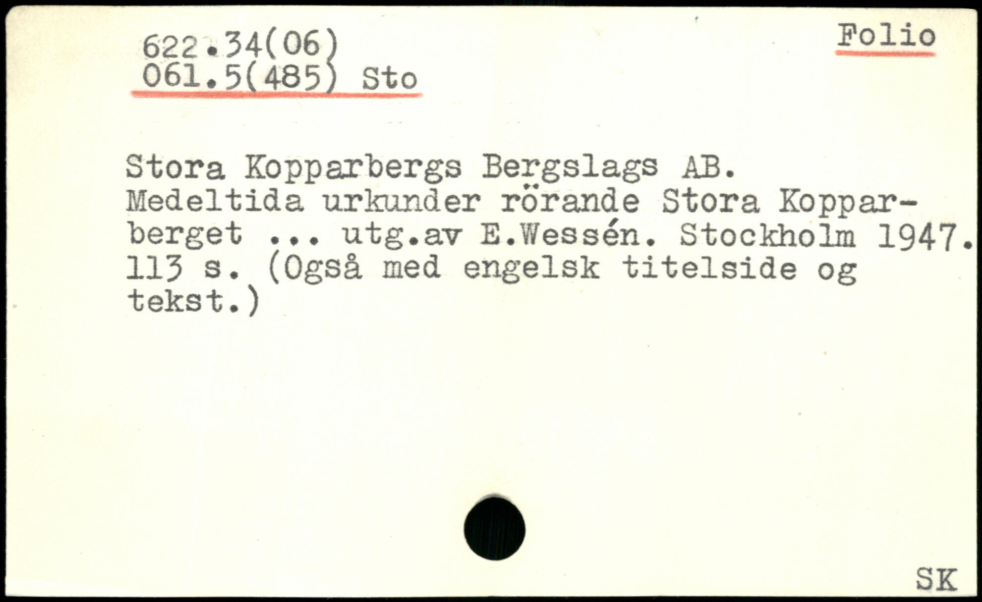 Stora Kopparbergs Bergslags AB. Medeltida urkunder rörande Stora Kopparberget ... utg.av E.Y/essén.