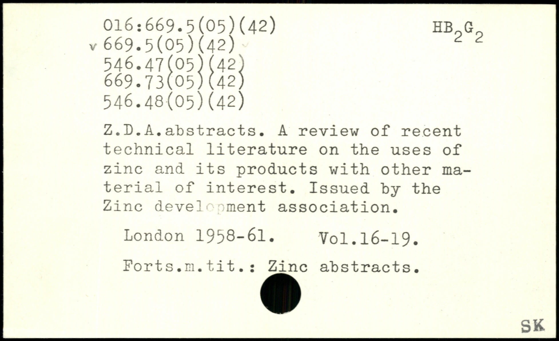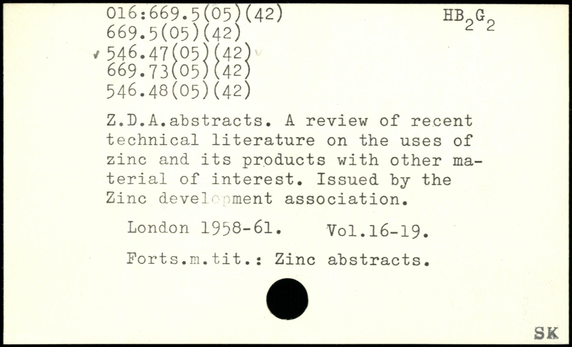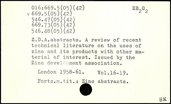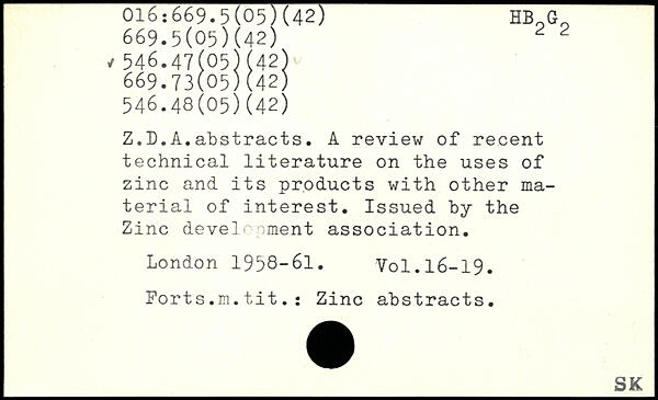 Z.L.A.abstracts. A review of recent technical literature on the uses of zinc and its products with other material of interest. Issued by the Zinc development association.