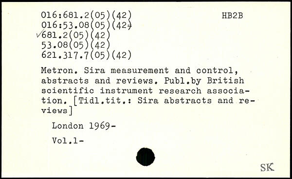 UDK: 016:681.2(05)(42), 681.2(05)(42), 53.08(05)(42), 621.317.7(05)(42)