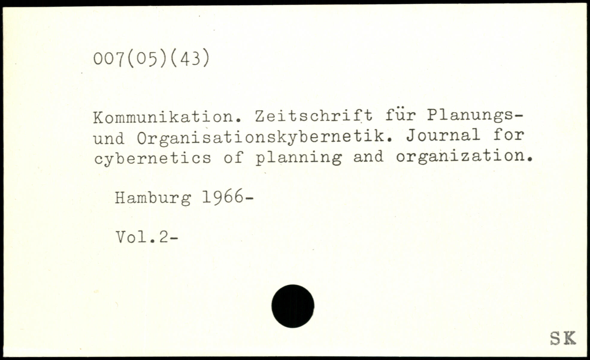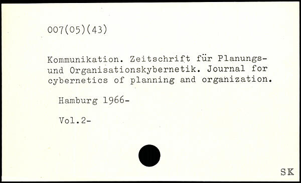 Kommunikation. Zeitschrift für Planungsund Organisationskybernetik. Journal for cybernetics of planning and organization.