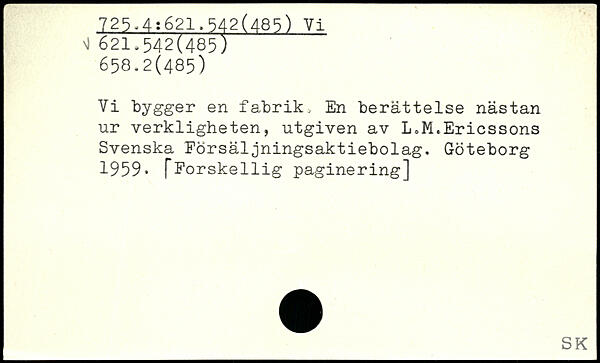 Vi bygger en fabrik. En berättelse nästan ur verkligheten, utgiven av L.M.Ericssons Svenska FÖrsäljningsaktiebolag. Göteborg 1959. fForskellig paginering]