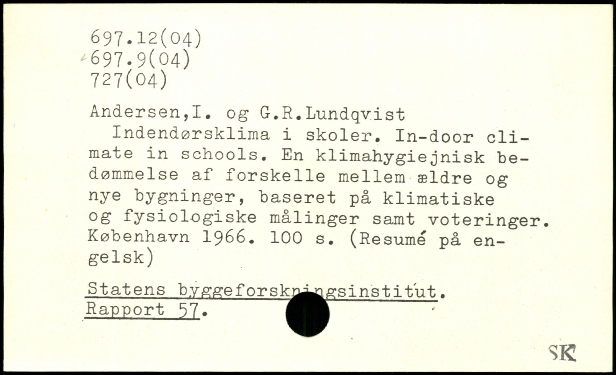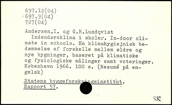 Indendørsklima i skoler. In-door cli-mate in schools. En klimahygiejnisk bedømmelse af forskelle mellem ældre og nye bygninger, baseret på klimatiske 0S fysiologiske målinger samt voteringer.