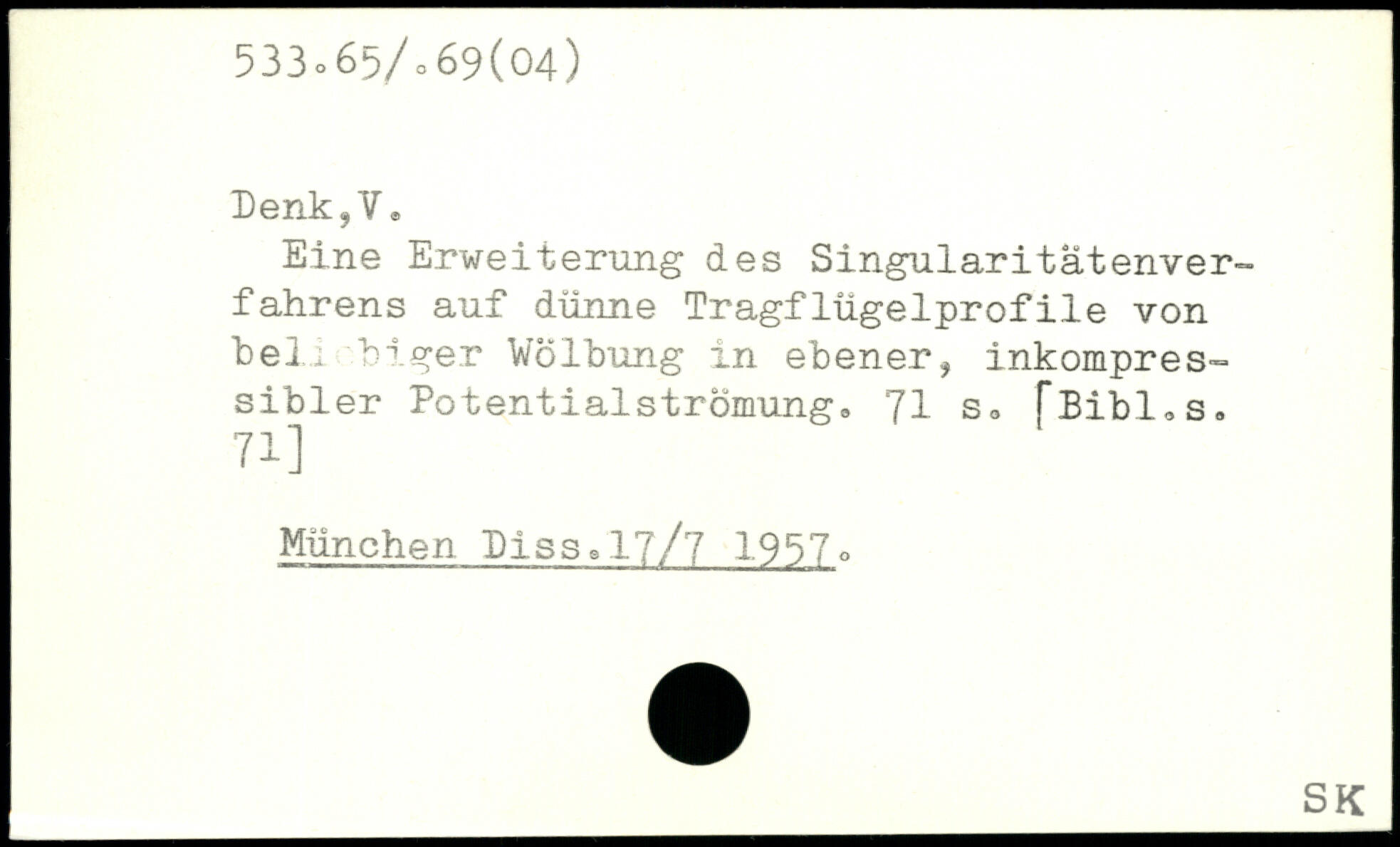 Eine Erweiterung des Singularitätenverfahrens auf dünne Tragflügelprofile von hei: V ge.r Wölbung in ebener, inkompres, sibler Potentialströmung