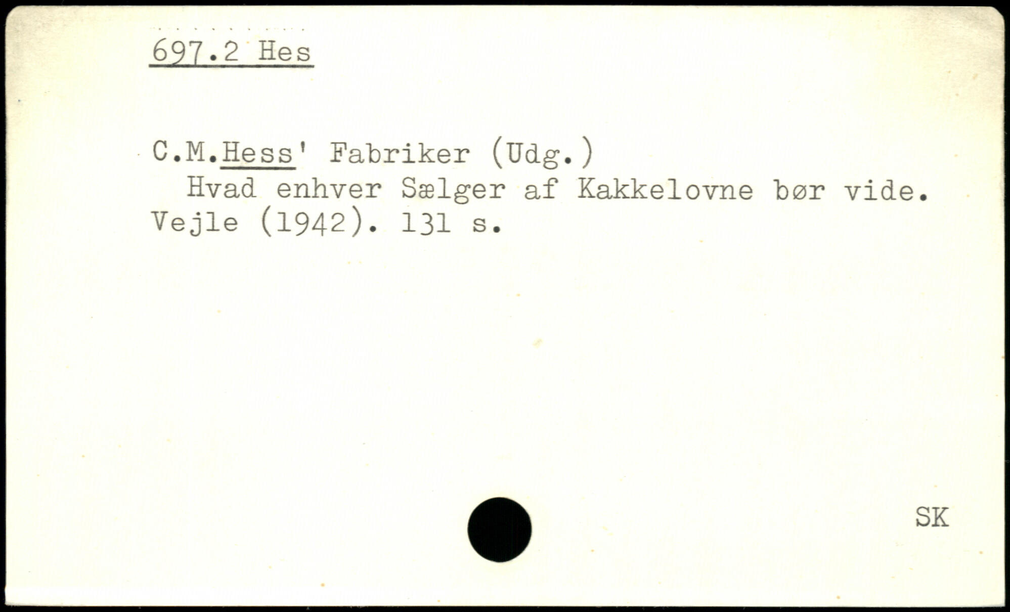 C.M.Hess' Fabriker (Udg.) Hvad enhver Sælger af Kakkelovne bør vide. Vejle (1942).