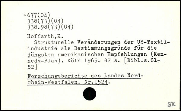 Strukturelle Veränderungen der US-Textil-industrie als Bestimmungsgründe für die jüngsten amerikanischen Empfehlungen (Kennedy-Plan).