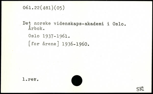 Det norske videnskaps-akademi i Oslo. Årbok. Oslo 1937-1961.