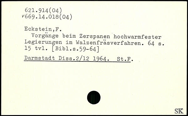 Vorgänge beim Zerspanen hochwarmfester Legierungen im Walzenfrasverfahren.
