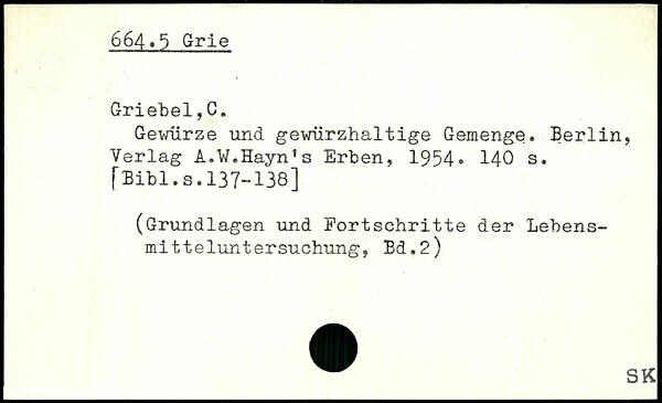 Gewürze und gewürzhaltige Gemenge. Berlin, Verlag A.W.Haynds Erben, 1954.