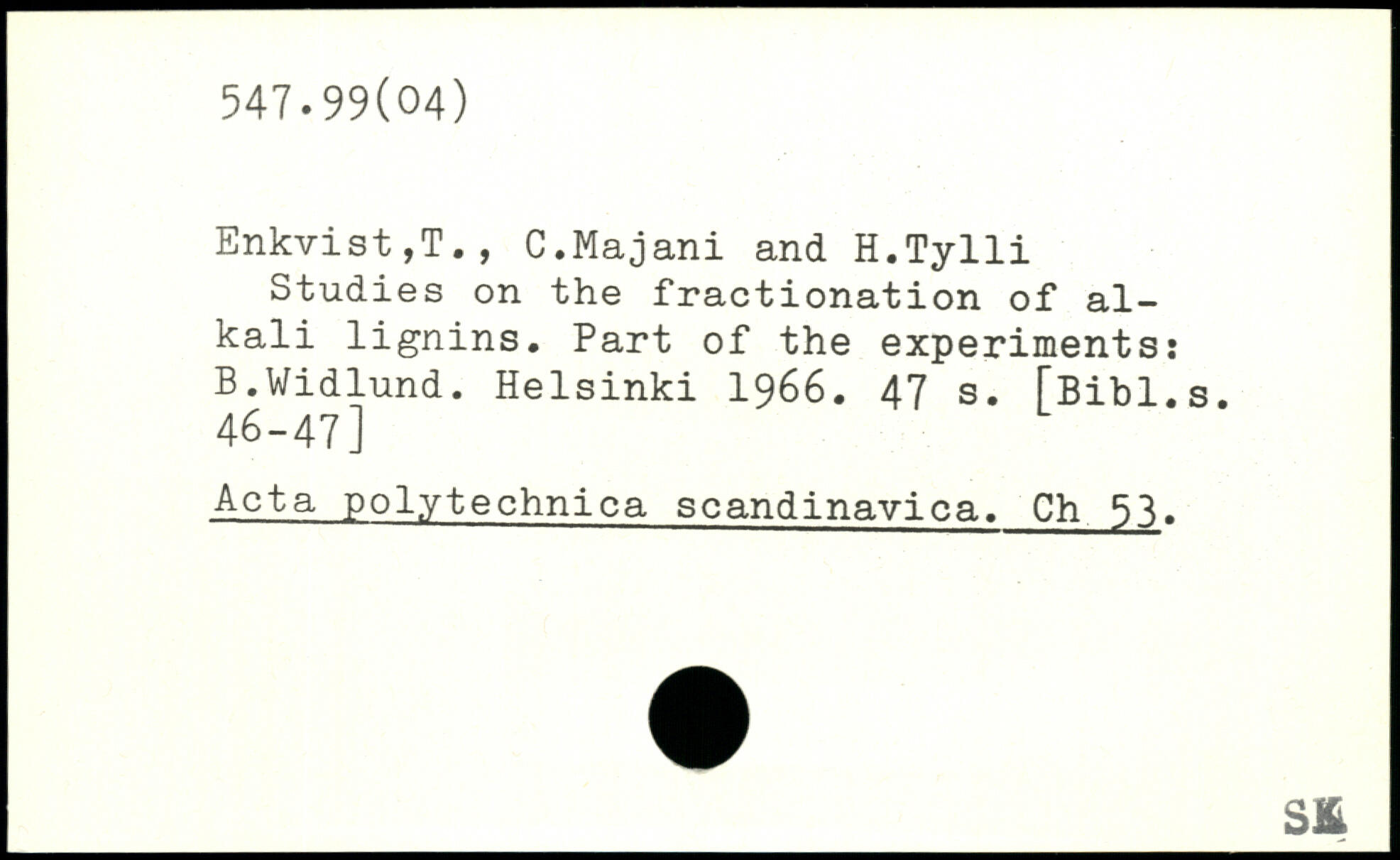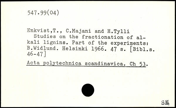 Studies on the fractionation of alkali lignins. Part of the experiments: B.Widlund.