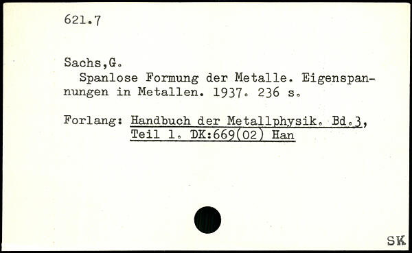 Spanlose Formung der Metalle. Eigenspannungen in Metallen. 1937