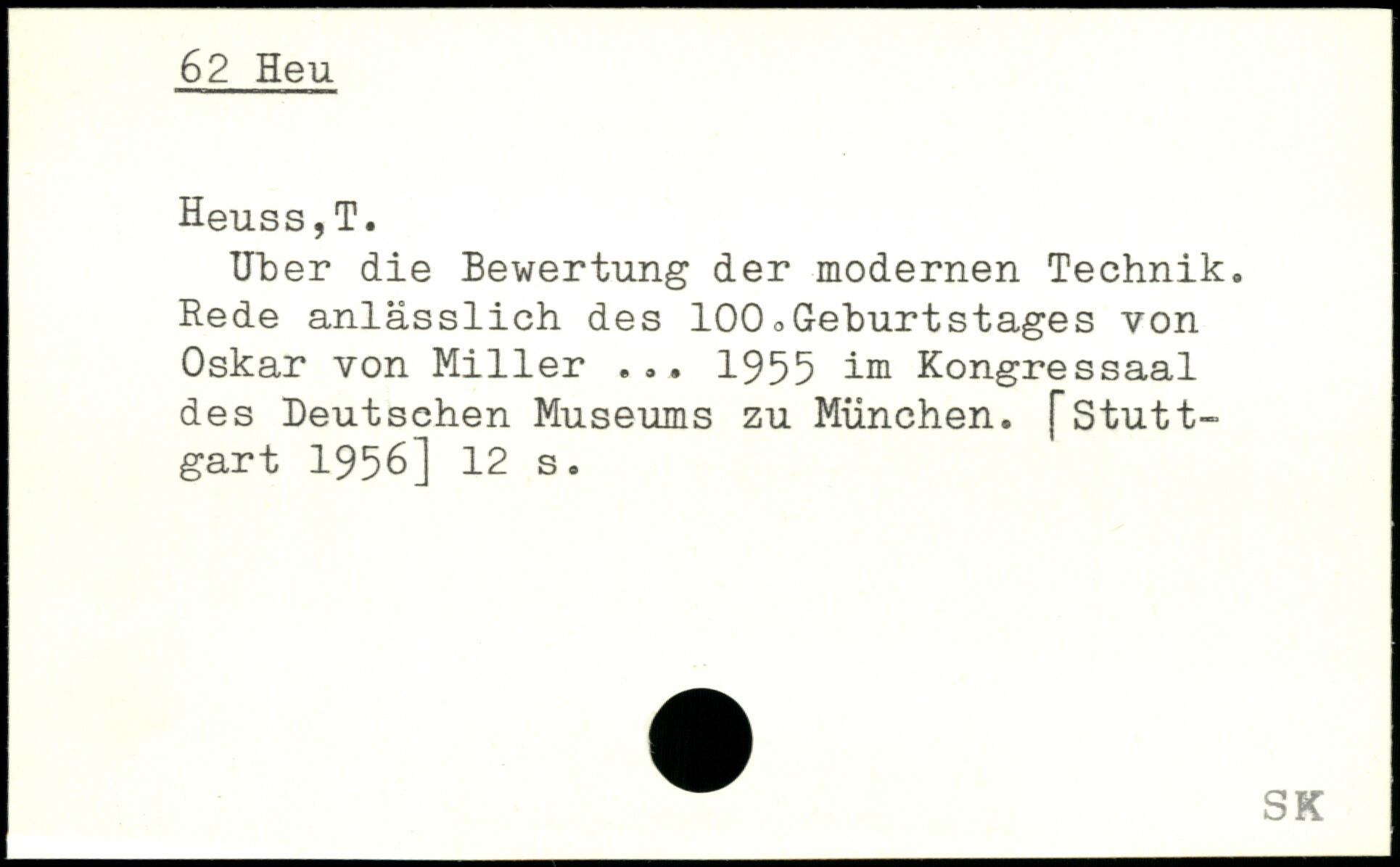 Tiber die Bewertung der modernen Technik. Rede anlässlich des 100,Geburtstages von Oskar von Miller ... 1955 im Kongressaal des Deutschen Museums zu München.