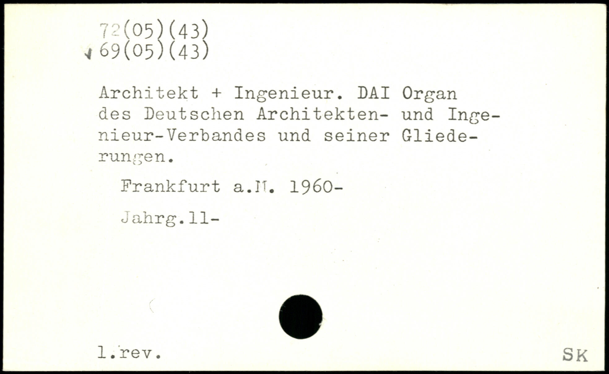 Architekt + Ingenieur. DAI Organ des Deutschen Architekten- und Ingenieur- Verbandes und seiner Gliederungen. Frankfurt a.IT. 1960-Jahrg.11- l.rev. SK