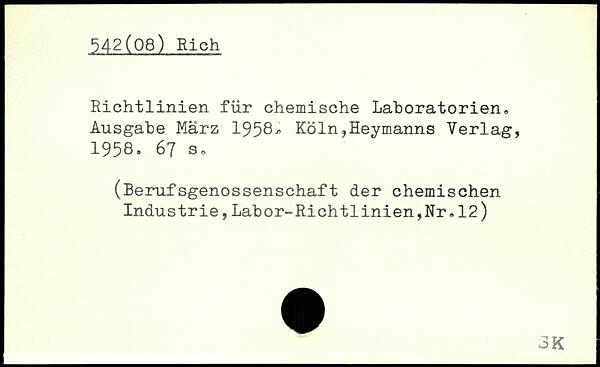 Richtlinien für chemische Laboratorien, Ausgabe Marz 1958'’