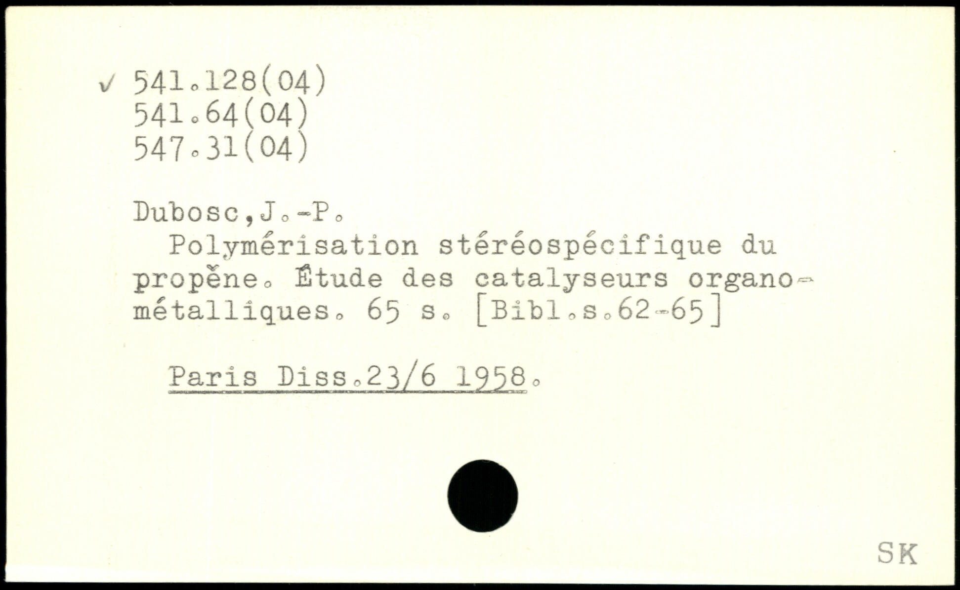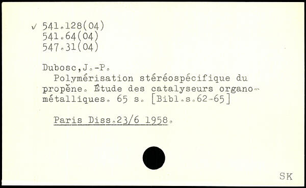 Polymérisation stéréospécifique du propëneo Étude des catalyseurs organo~ métalliques,