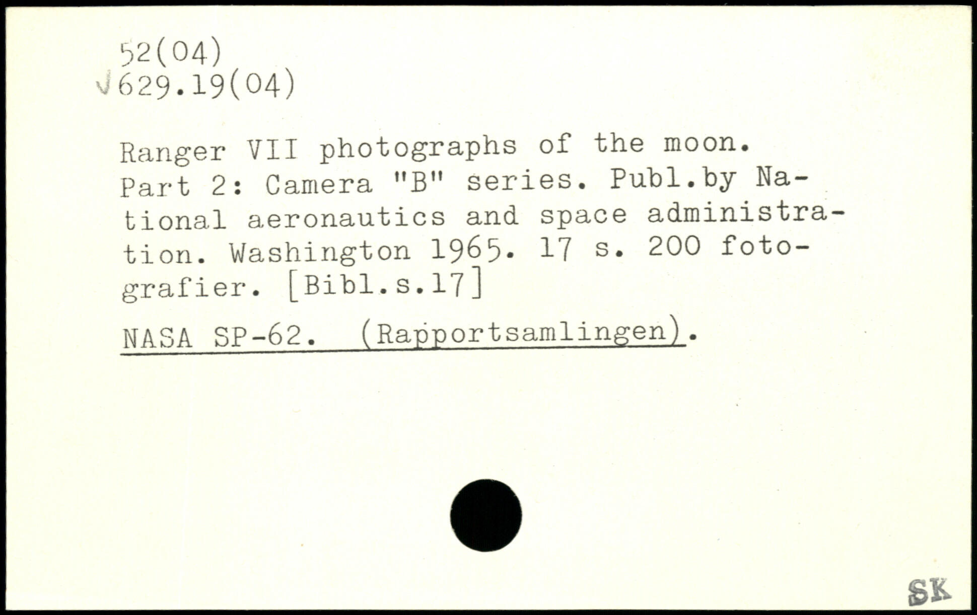 Ranger VII photographs of the moon. Part 2: Camera "B" series.