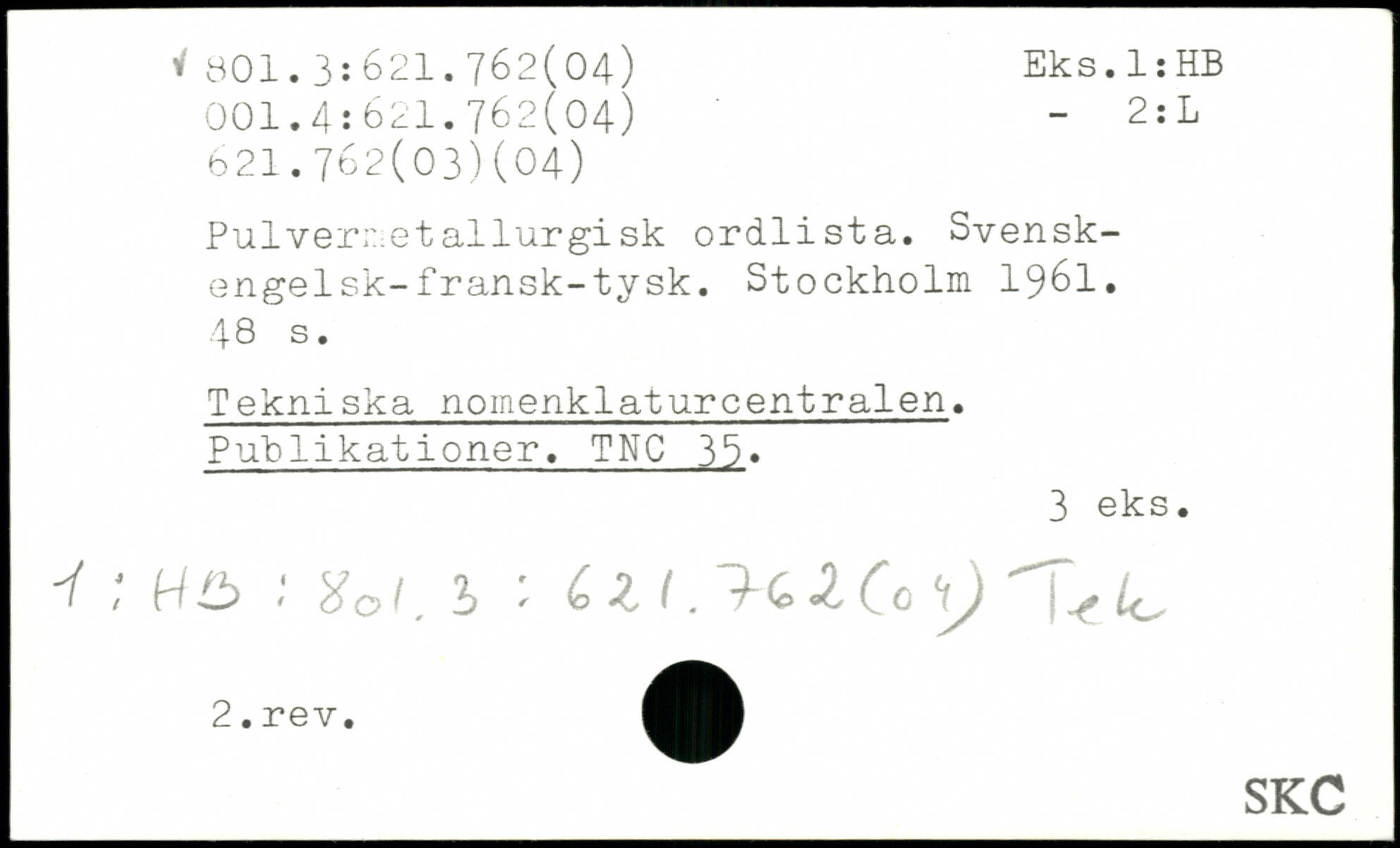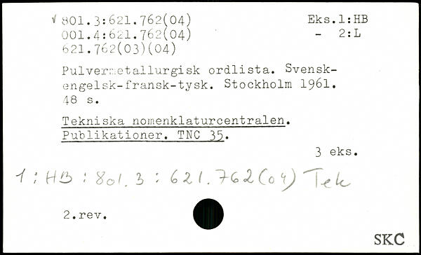 Pulvermetallurgi sk ordlista. Svensk-engelsk-fransk-tysk.