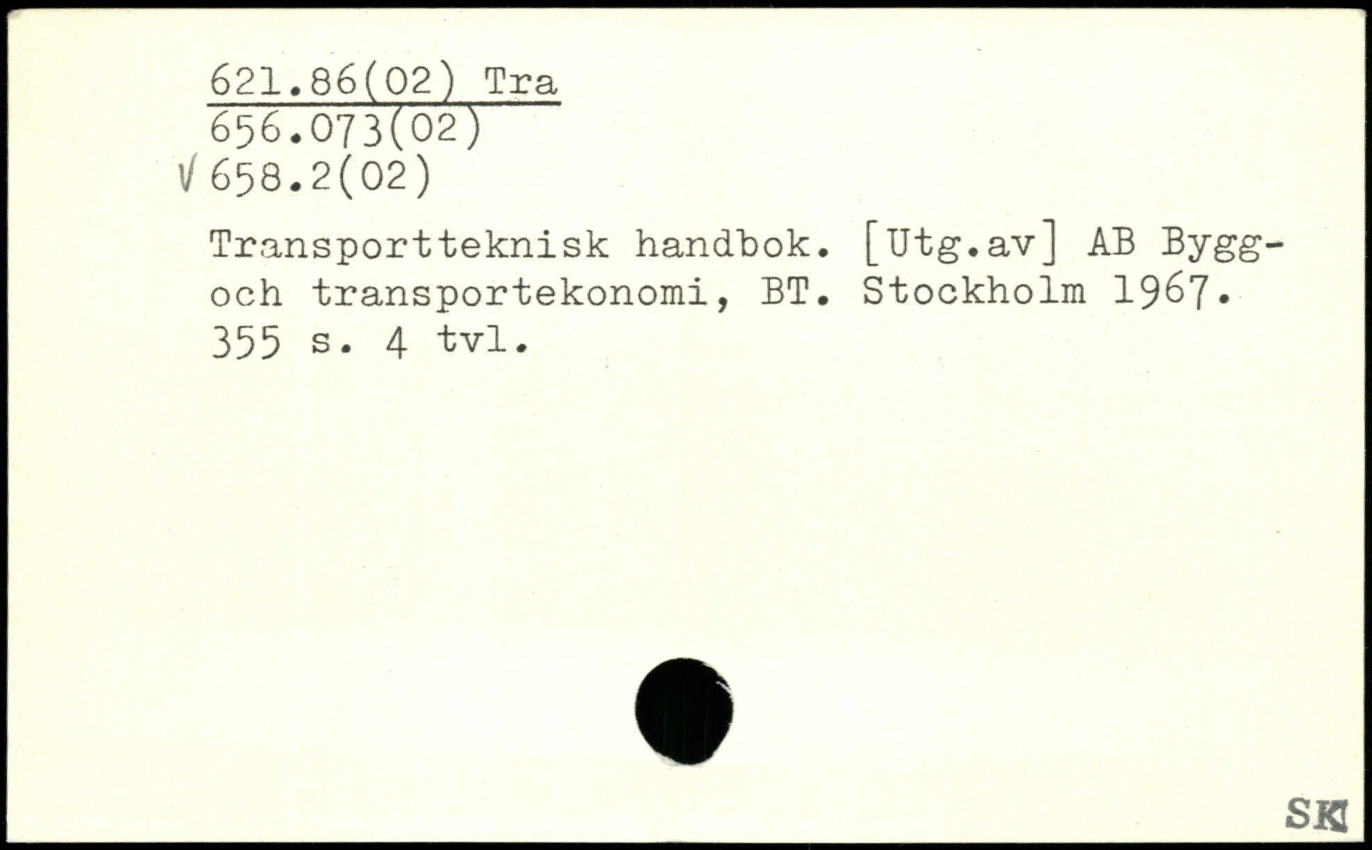 Transportteknisk handbok. [Utg.av] AB Bygg-och transportekonomi, BT.