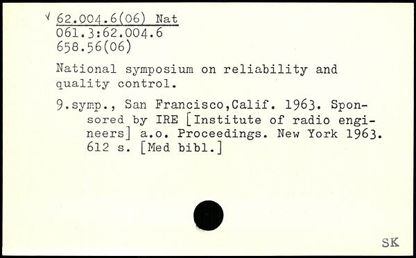 National symposium on reliability and quality control. 9.symp., San Francisco,Calif. 1963. Sponsored by IRE [institute of radio engineers] a.o. Proceedings.