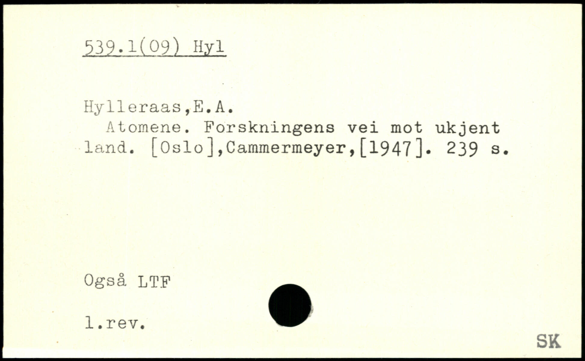Atomene. Forskningens vei mot ukjent land. [Oslo],Cammermeyer, [1947]. 239 3. Også LTF l.rev.
