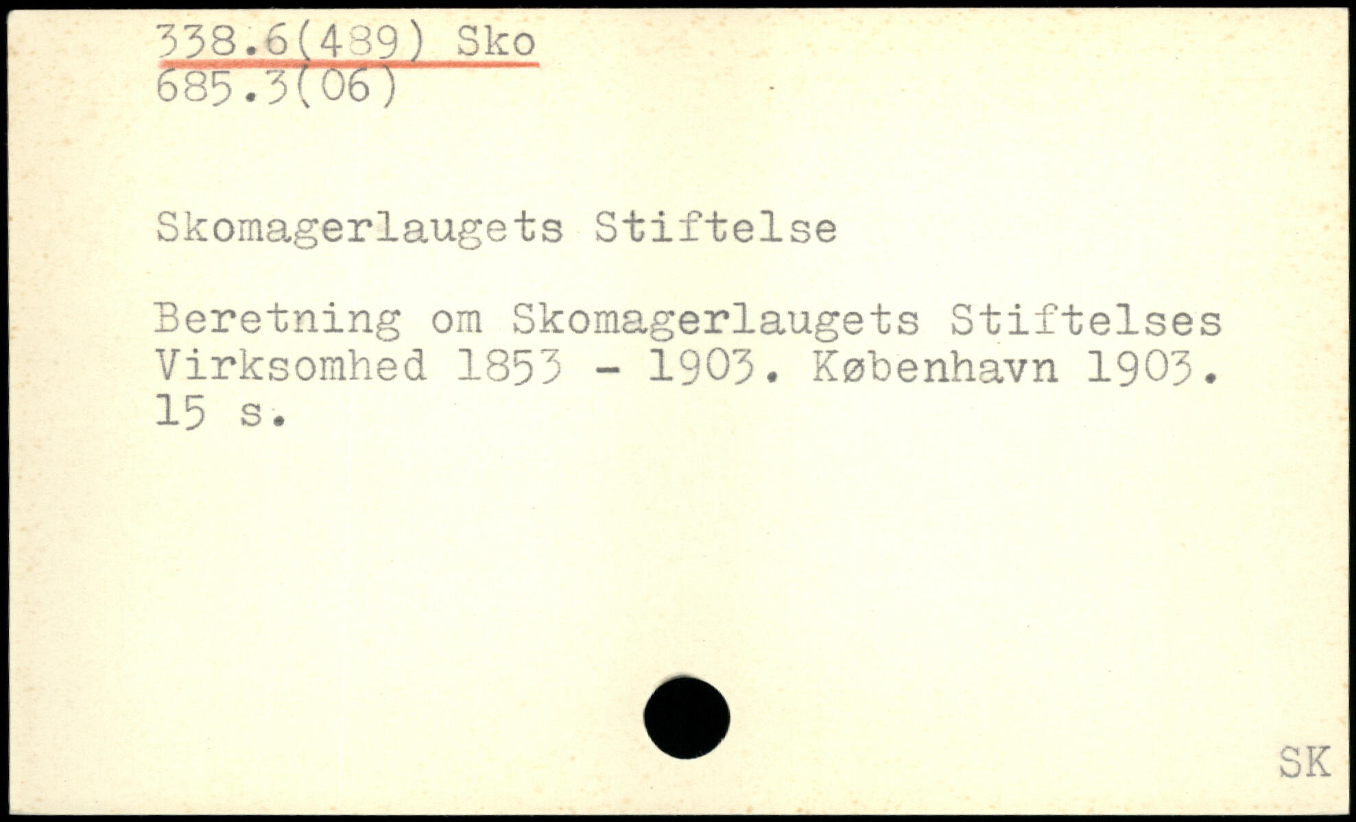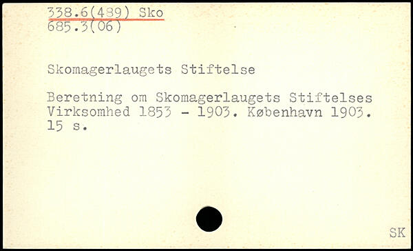 Skomagerlaugets Stiftelse Beretning om Skomagerlaugets Stiftelses Virksomhed 1853 - 1903.