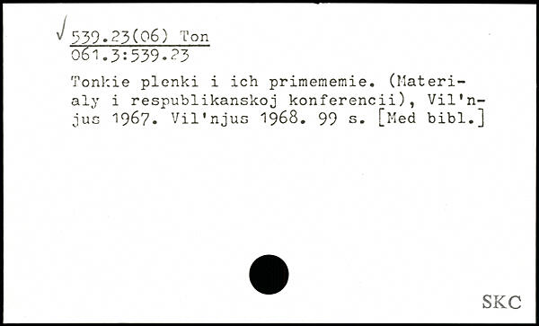 Tonkie plenki i ich primememie. (Materi-aly i respublikanskoj konferencii), Vil'n-3ug 1967. Vil'njus 1968.