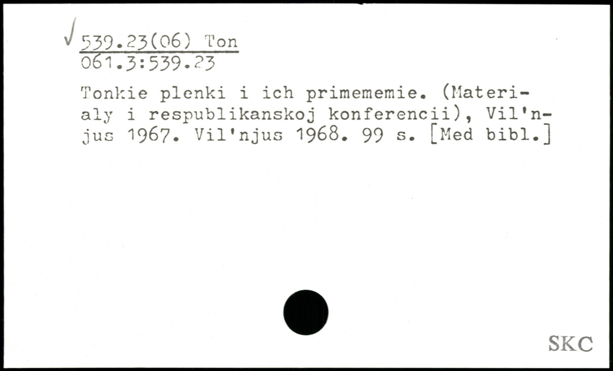 UDK: 539.23(06) Ton, 061.3:539.23