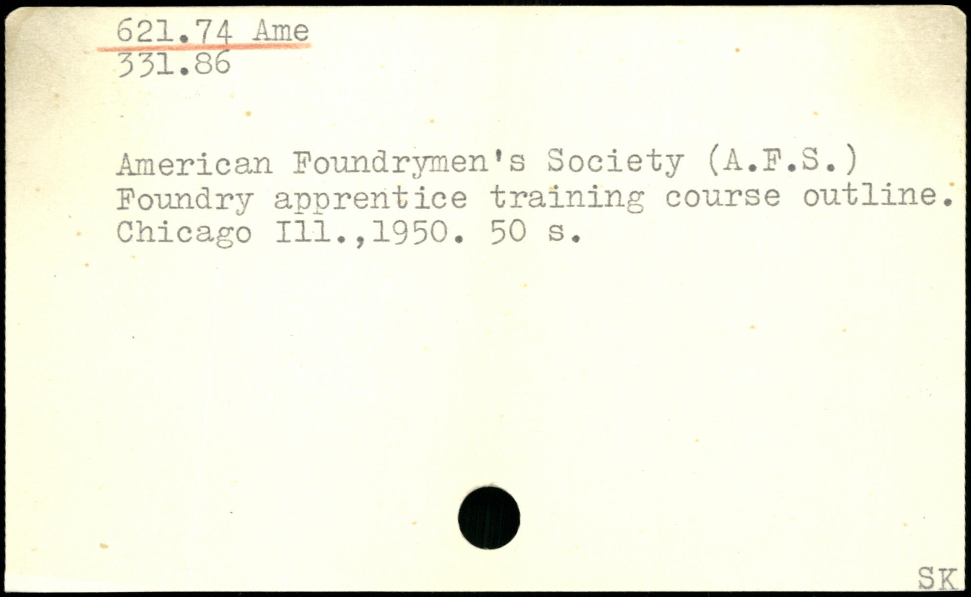 American Poundrymen’s Society (A.P.3.) Foundry apprentice training course outline. Chicago 111.,1950.