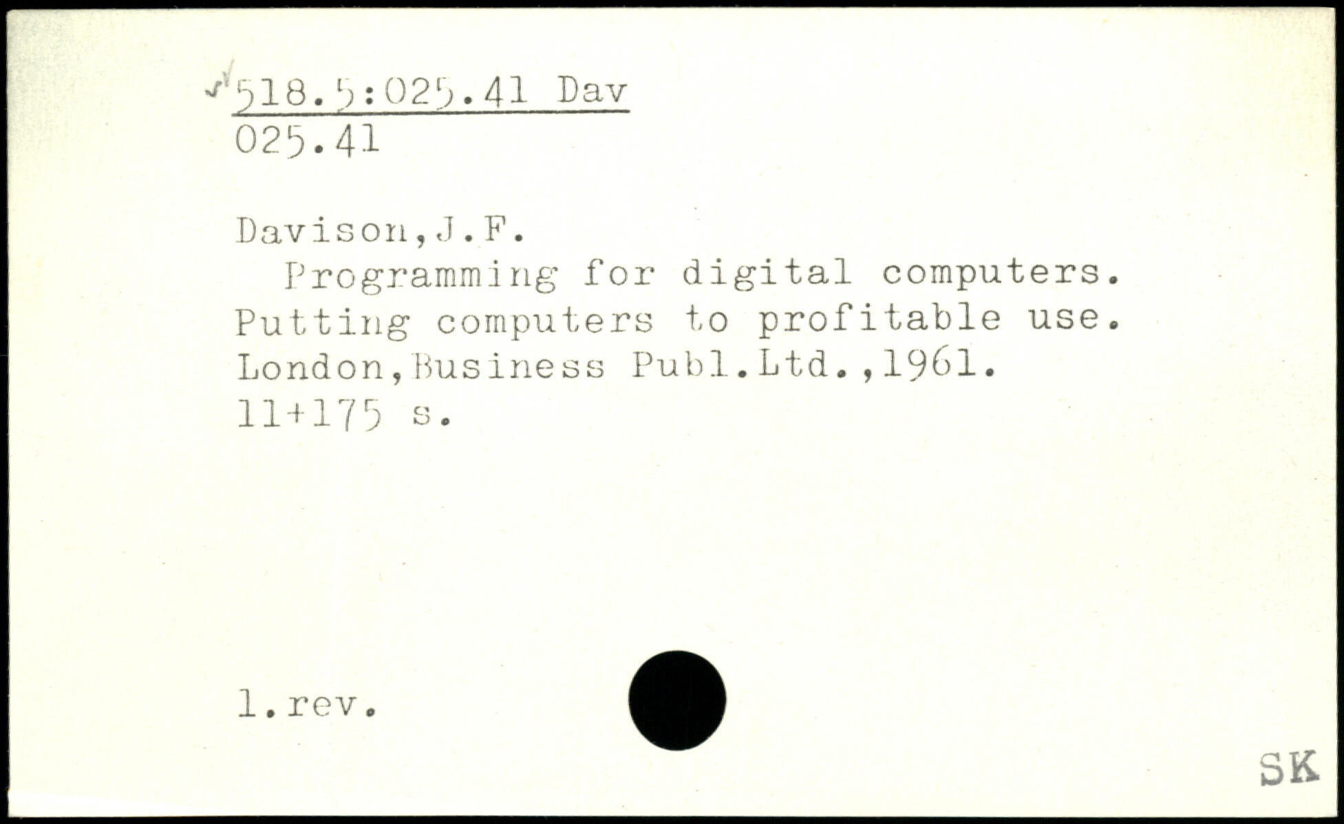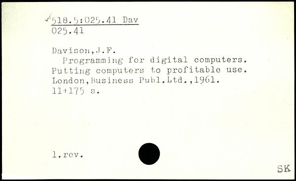 Programming for digital computers. Putting computers to profitable use. London,Business Publ.Ltd.,1961.