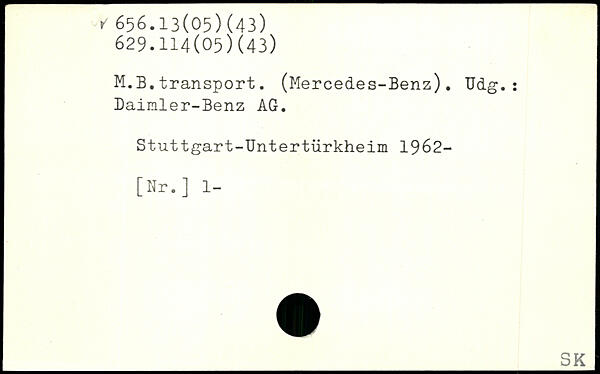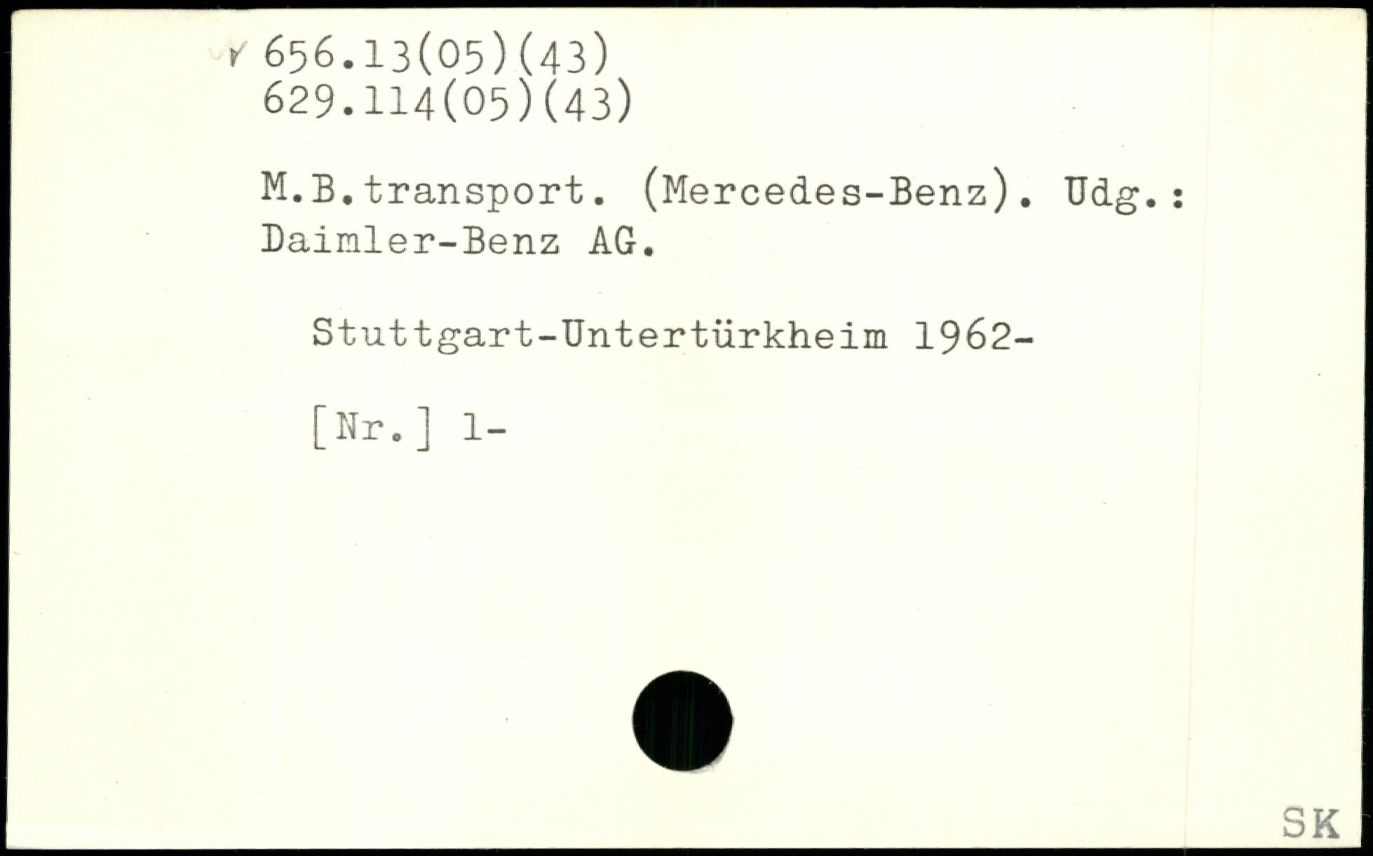 M.B.transport. (Mercedes-Benz). Udg.: Daimler-Benz AG. Stuttgart-Untertürkheim 1962- [Nr.] 1-