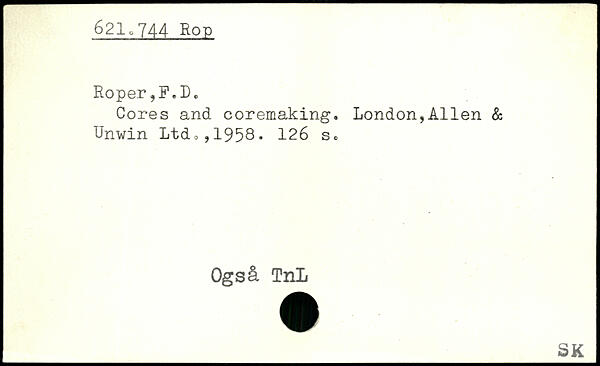 Cores and coremaking. London,Allen & Unwin Ltd,,1958.