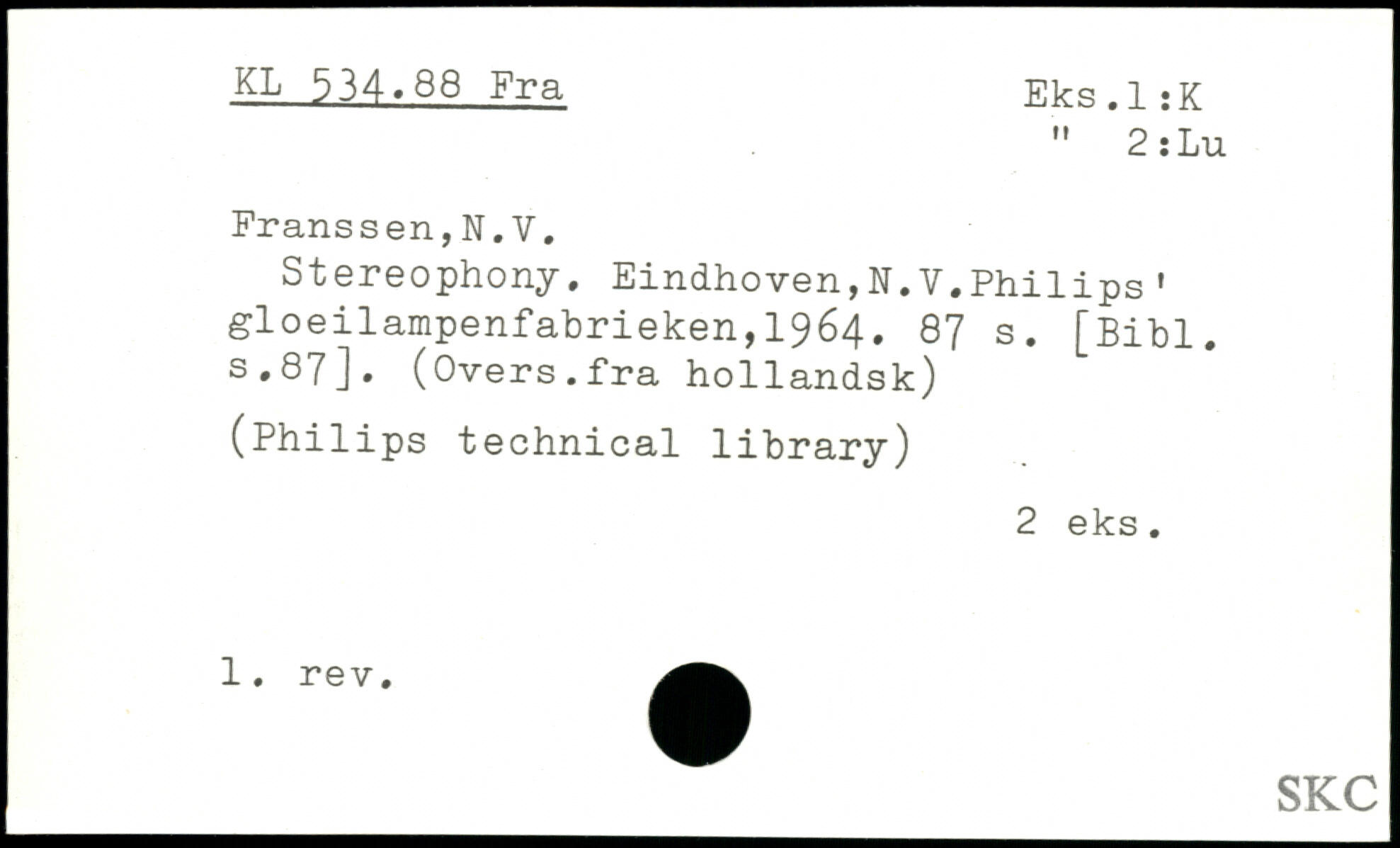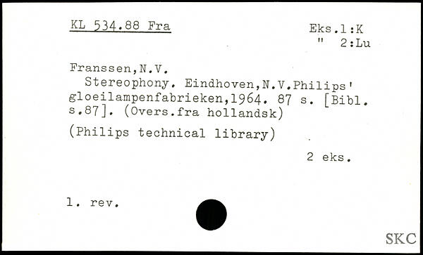 Stereophony. Eindhoven,N.V.Philips' gloeilampenfabrieken,1964.