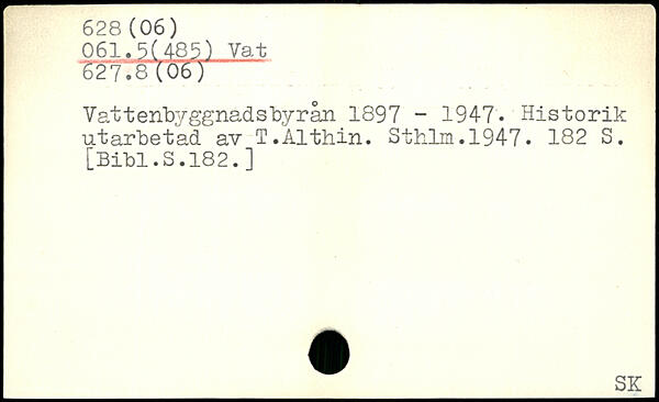 Vattenbyggnadsbyrån 1897 - 1947. Historik utarbetad av 1.Ålthin. Sthlm.1947.