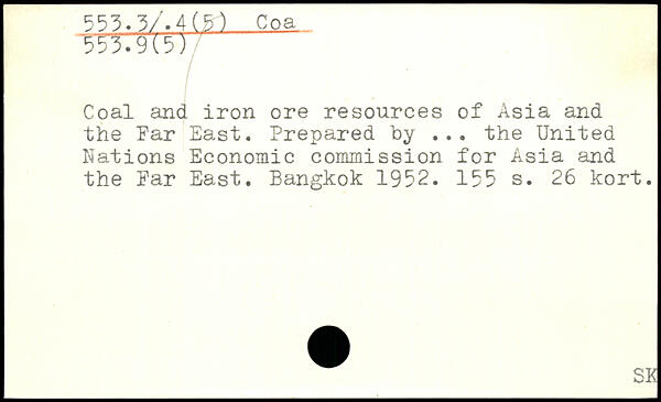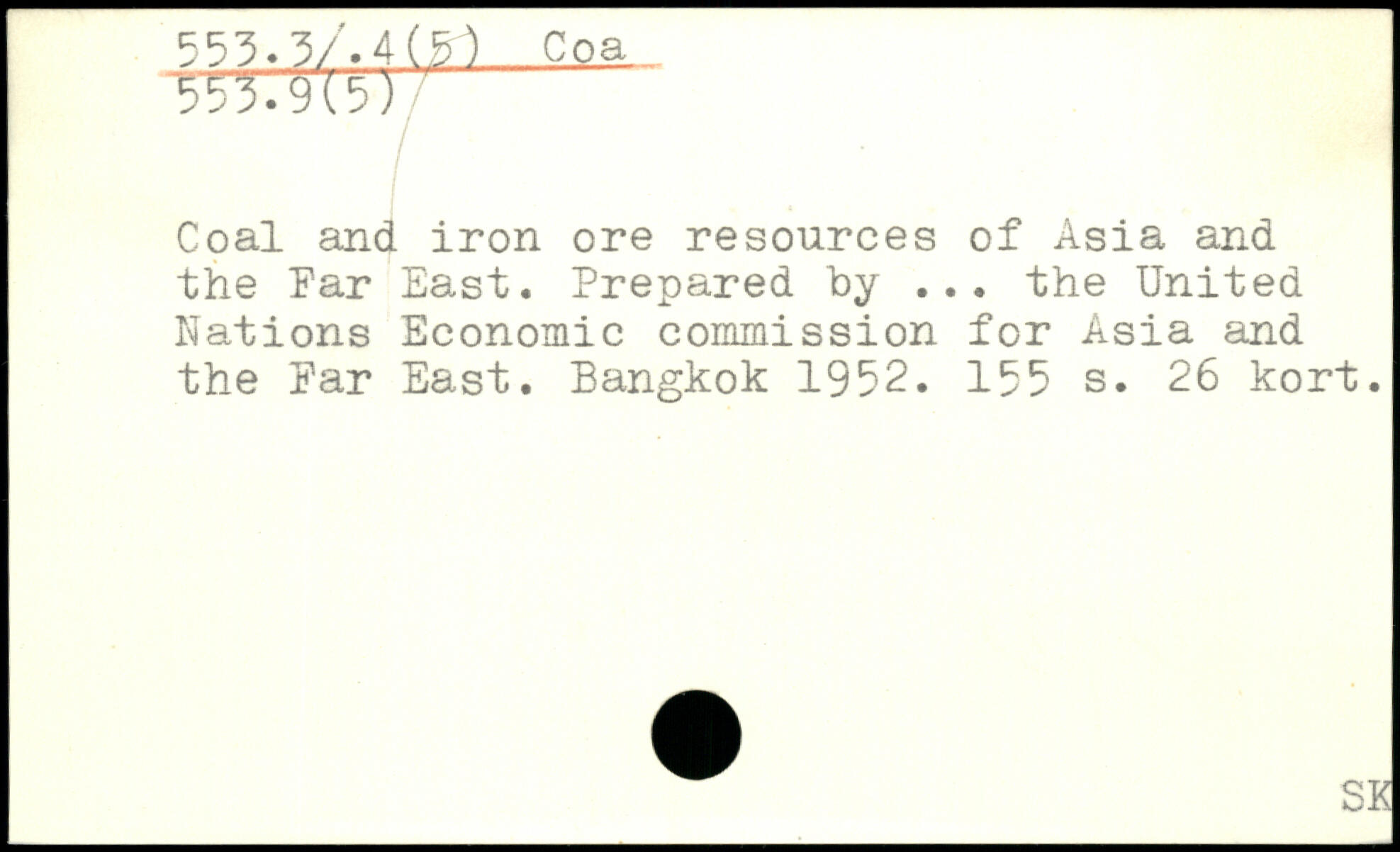 Coal and iron ore resources of Asia and the Far East. Prepared by ... the United Nations Economic commission for Asia and the Far East. Bangkok 1952.