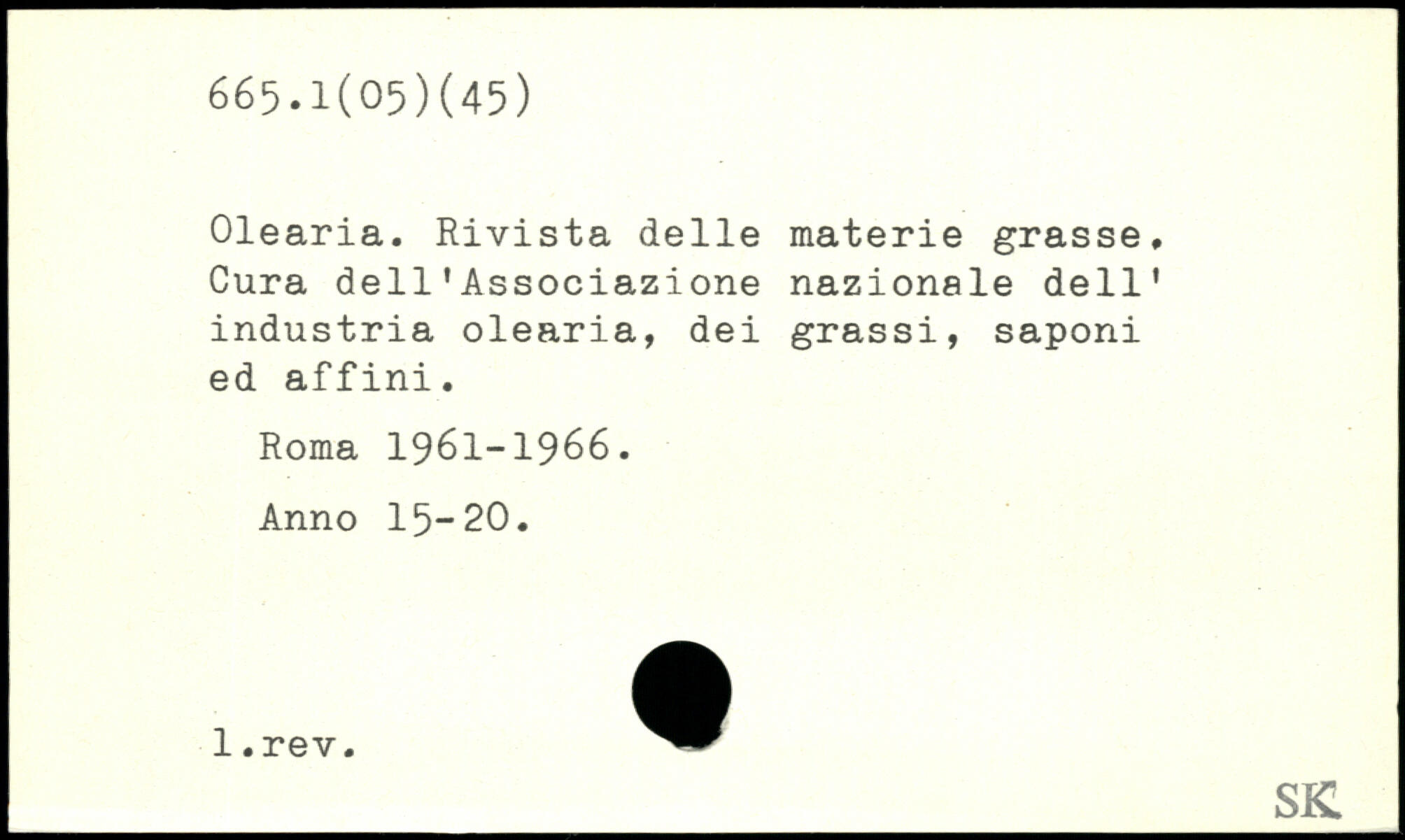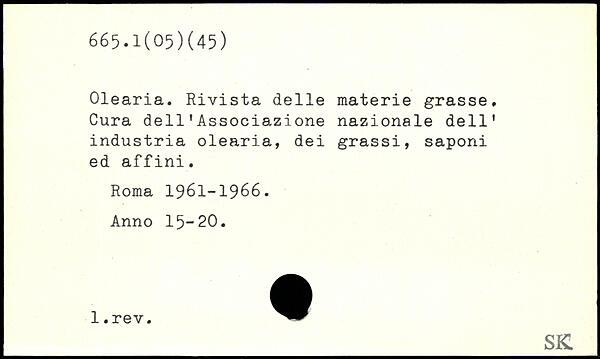 Olearia. Rivista delle materie grasse, Cura dell1Associazione nazionale dell' industria olearia, dei grassi, saponi ed affini.