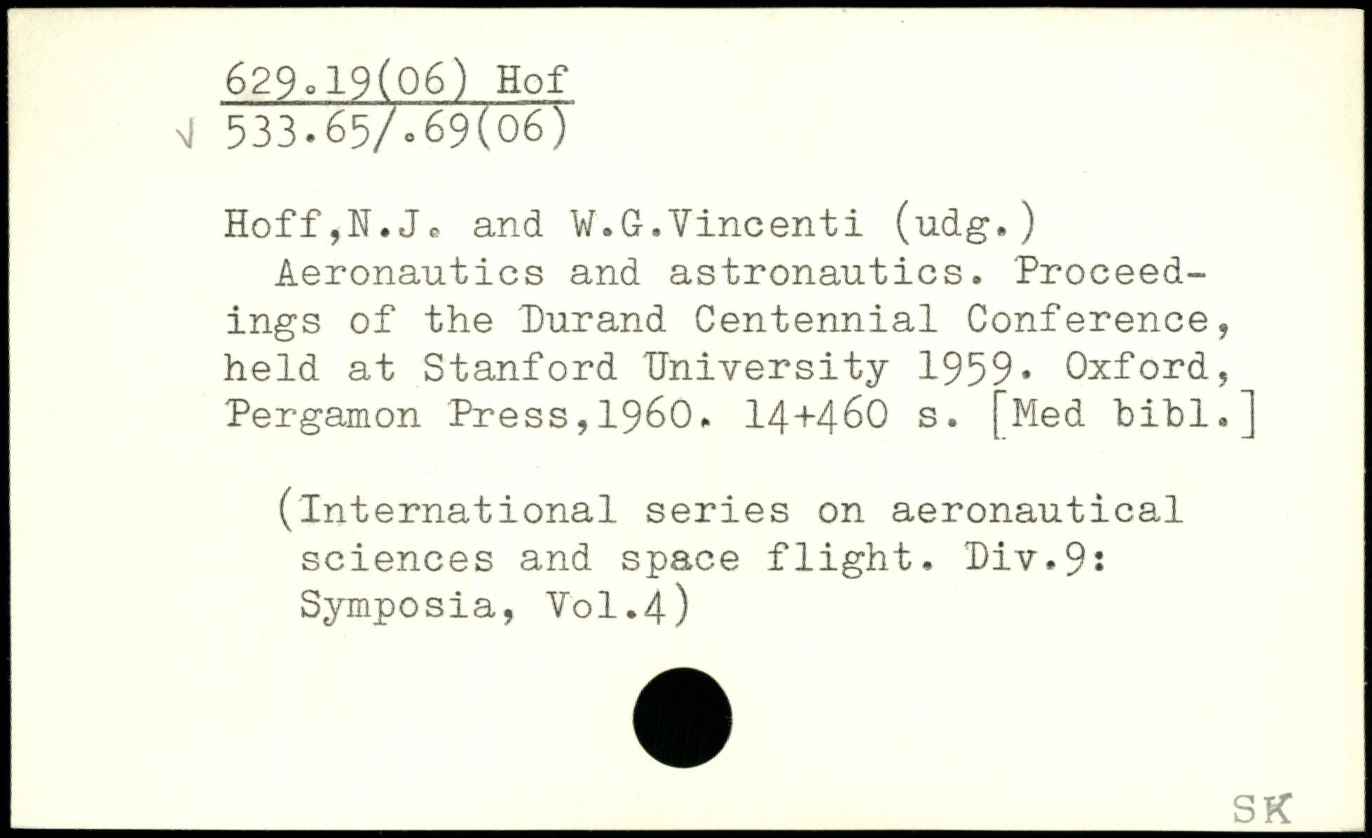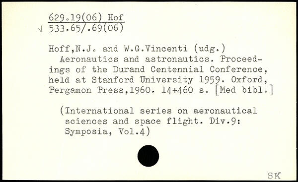 Aeronautics and astronautics. Proceedings of the Durand Centennial Conference, held at Stanford University 1959