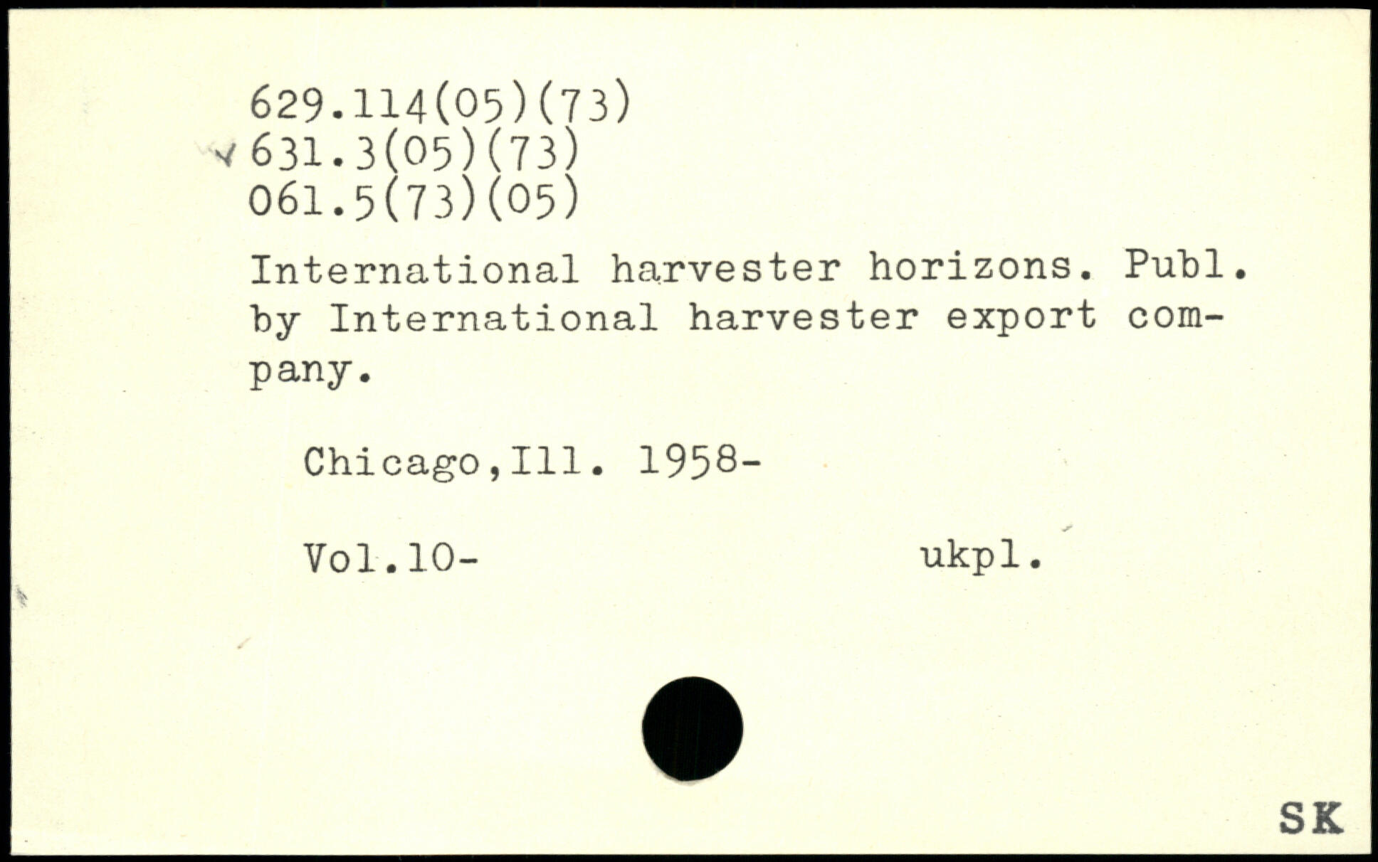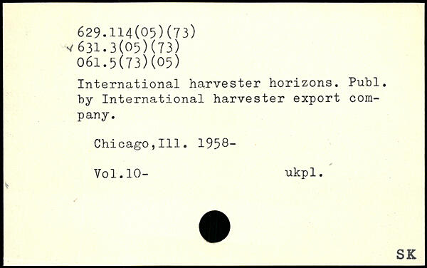 International harvester horizons. Piibl. by International harvester export company. Chicago,111. 1958-