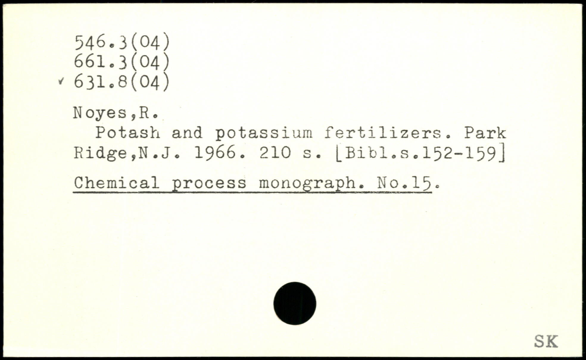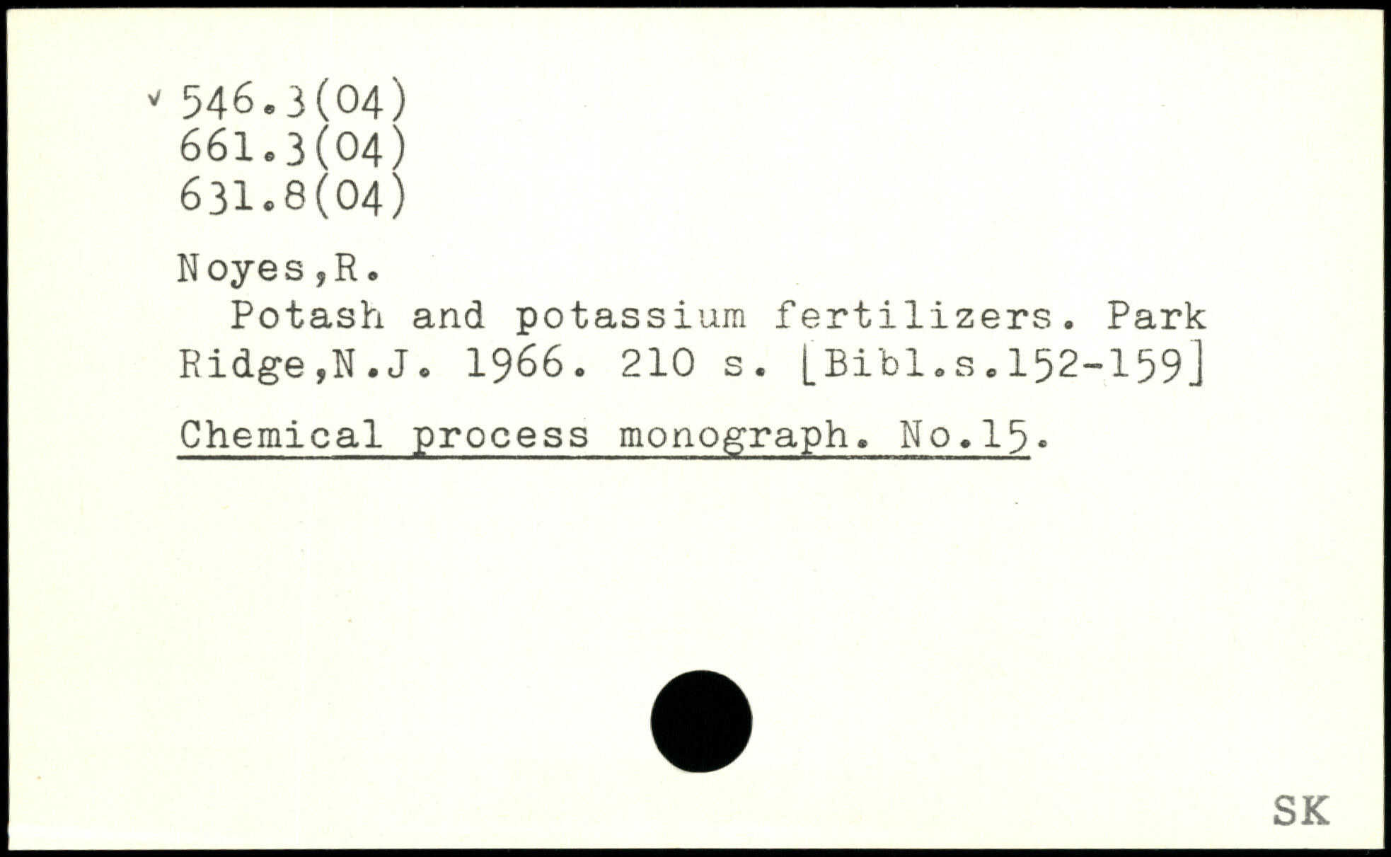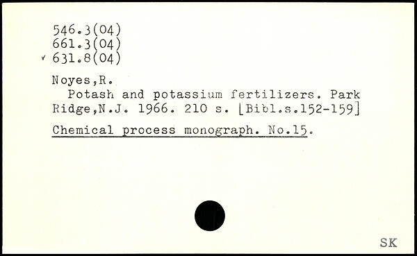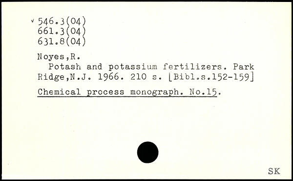 Potash and potassium fertilizers. Park Ridge,N.J. 1966.